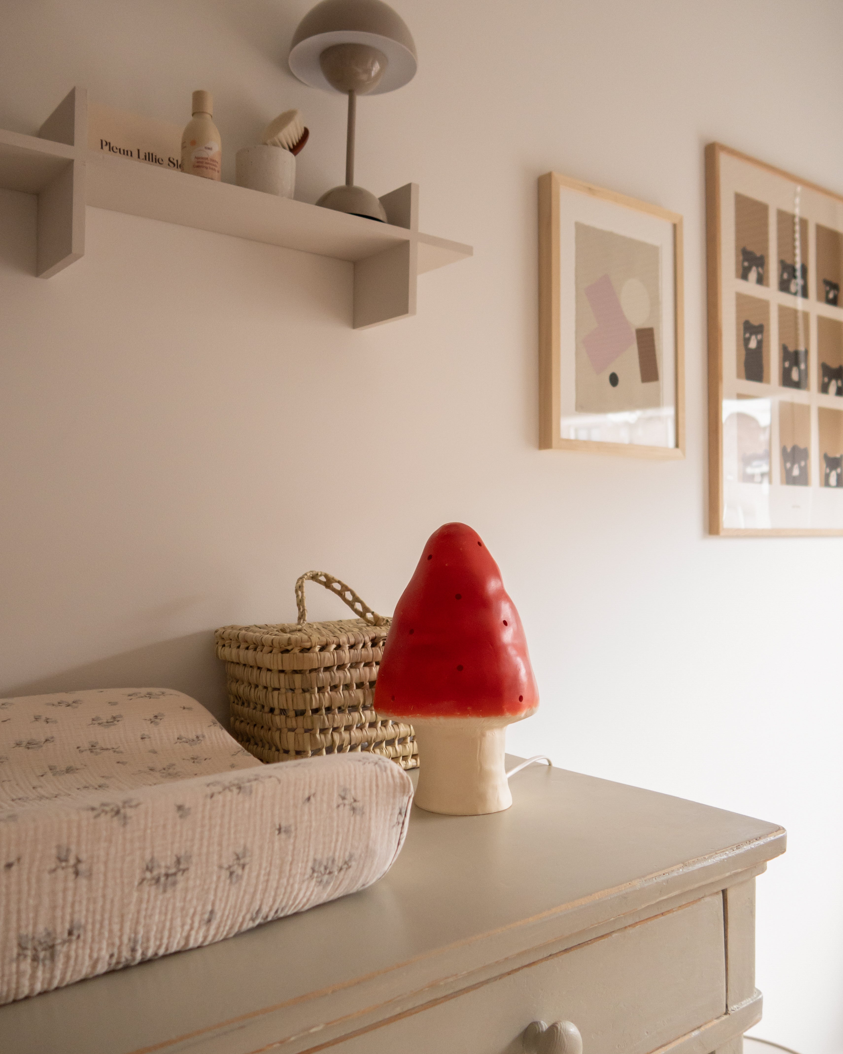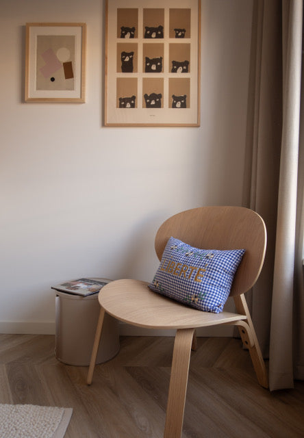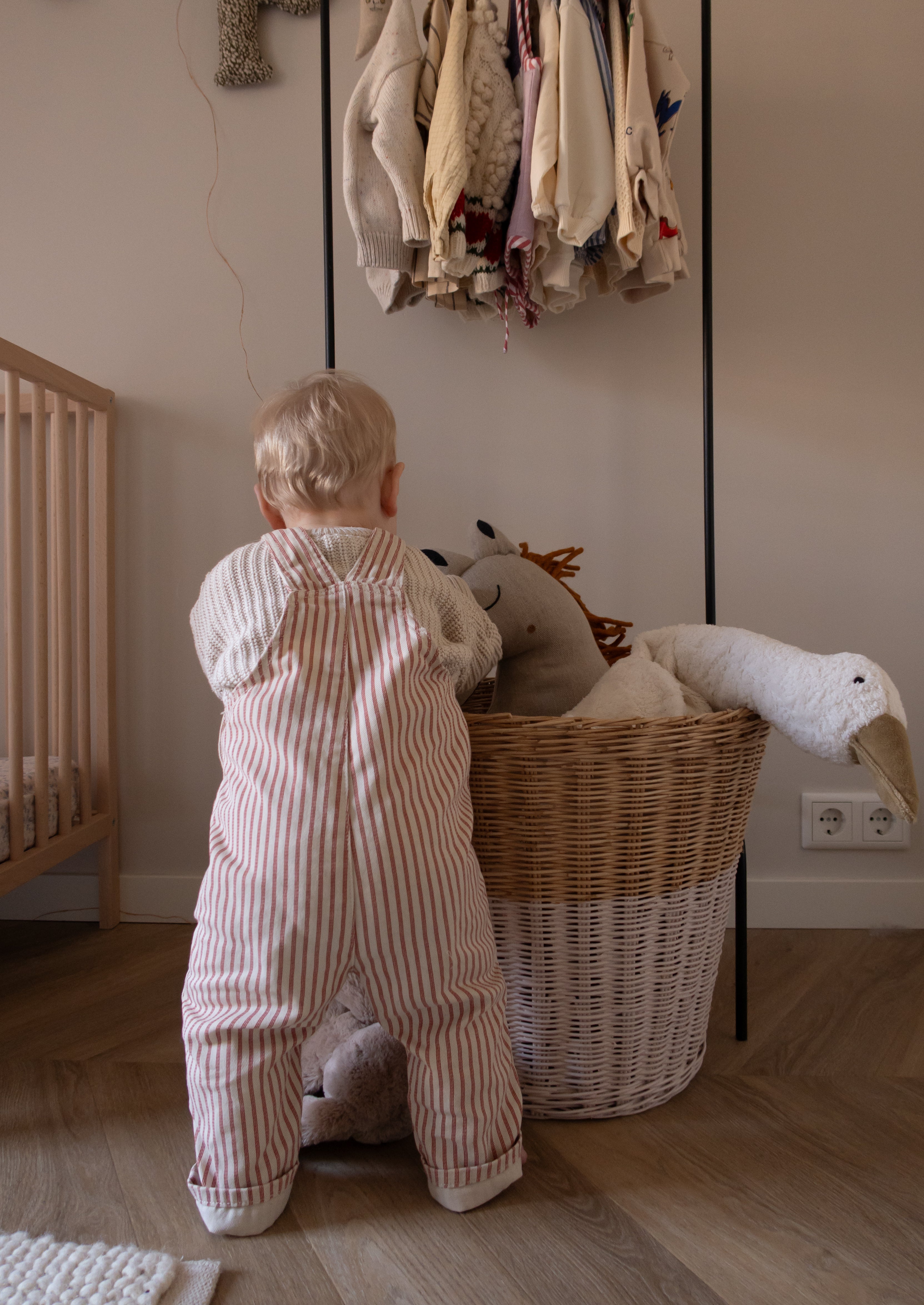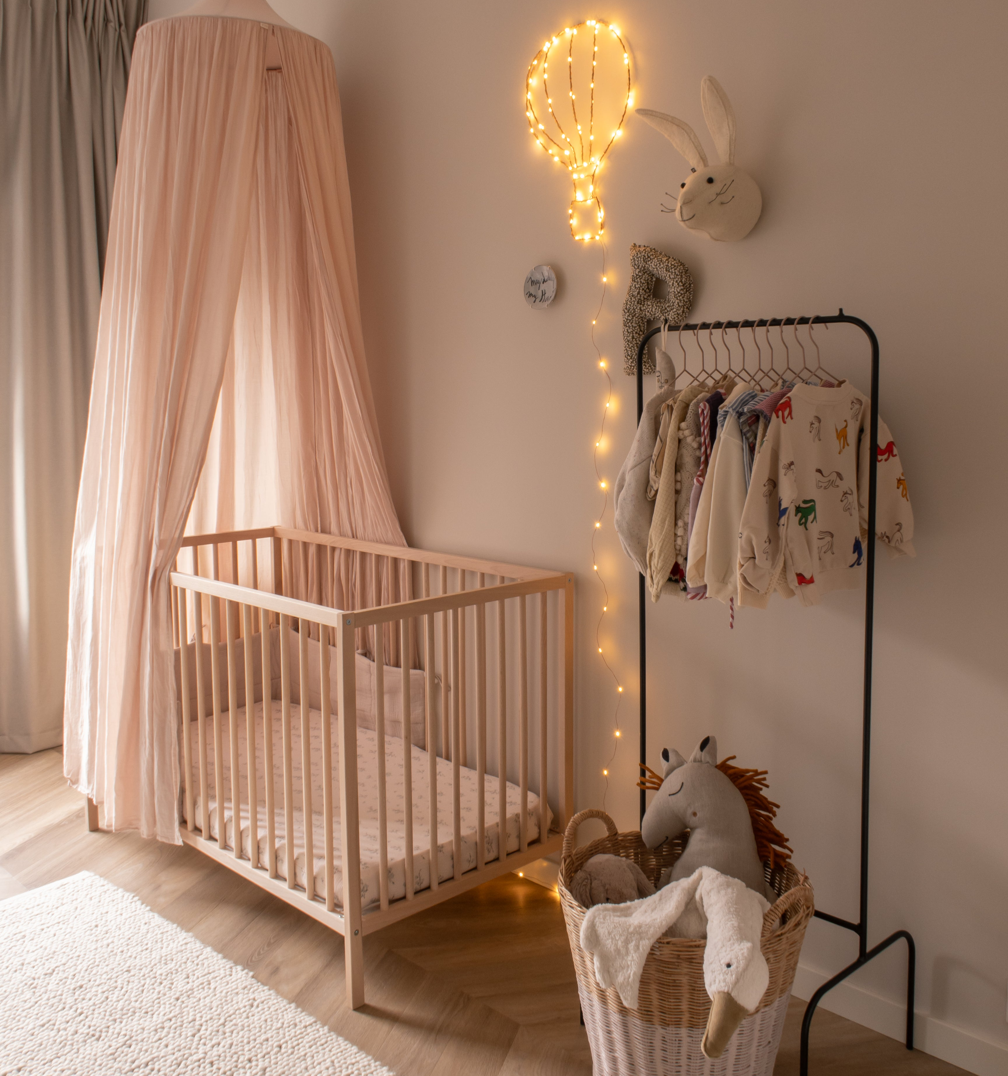 Start with a neutral base and add color and playfulness through cushions, sheets, rugs, and wall decorations. This way, it’s easy to adjust the room as your child grows and their preferences change. For example, I’ve held off on wallpaper for now, as I’d love Pleun to have a say in that when she’s older. Creating a warm atmosphere is key, and materials like wood, linen, and cotton really help achieve that.