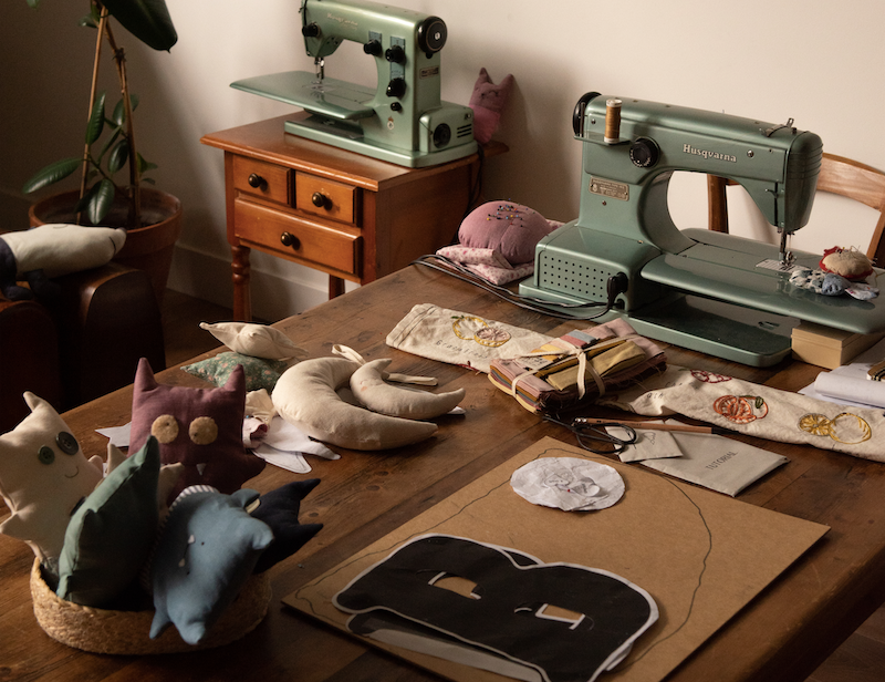 Meet Madelene. She lives with her husband Brian, 3 kids: Beau, Emma-Sophie, Phileine and their dog Ramon in an old fire station converted into a house in the middle of the charming village Loenen aan de Vecht. She is the owner of Atelier 84 and hosts sewing lessons for kids and grown ups in her creative studio at home.