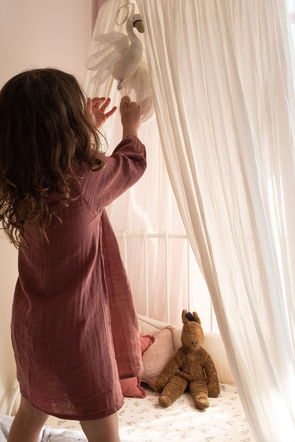 The canopy turns this bright kids room into a magical space.