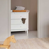We are pleased to present a new version of the original Wood Dresser & Nursery Dresser featuring 6 drawers. The new models are characterized by a calmer and more timeless design and now feature three spacious drawers, each divided into two compartments. The result is the same functionality as before, but with a little extra storage space. The new design has already been introduced for the oak versions and is now being implemented across the rest of the range.