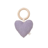 Pretty little lavender heart teether made from eco-friendly and natural linen. The heart contains a small bell to stimulate the child's senses.