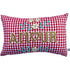 This red 'Amour' Cushion from CSAO comes in an all over checkered print and features embroidered flowers in pastel tones of ecru and yellow with green leaves and a gold embroidery of the word Amour.