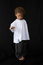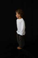 This soft organic cotton long sleeved tee can be worn as it is, or over/under a regular tee. A somewhat longer fit for a loose and relaxed look. Designed so the child can wear it over many years. No need to size up, this style runs big!