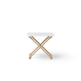 The Camp bed table with a classic oak x frame and tabletop in either oak or white-painted MDF is a stylish bed table for the children's room with its beautiful design and delicate craftsmanship. Still, it can also stand alone or be combined with other home interiors. The table is available in a low and high version, both with the option of individual adjustment in two heights, where the table top can easily be fixed with two screws at the desired height.
