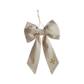 Each bow is handmade in fabric. Because of the way it is sewn and turned, there can be a small opening (about 10 cm) on the back tail ribbon. If this little gap shows, just fluff and adjust the bow gently — it will slip neatly behind the loop and disappear.