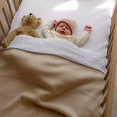 Soft knitted merinowool baby blanket Georgia in Milk color. Merino wool is renowned for its excellent temperature-regulating properties, keeping your little one warm in winter and cool in summer.