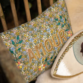 Cushion Amour from CSAO, handmade with love in Senegal. One cushion is one day of embroidery. Made with the finest fabrics and threads brought from Paris. Founded in 1995, the CSAO brand aims to spread the work of the best craftsmen and artists of West Africa in Europe. They have been working with the same professionals for more than twenty years. Each piece is a unique creation and the perfect addition to your room, or that of your little one.
