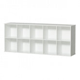 Wood shelving unit 5x2 horizontal with base from Oliver Furniture. This shelving unit in classic Nordic style consists of 5 compartments horizontal and 2 vertical – which stand on a base. It is a new design by Oliver Furniture and forms part of the Wood Collection. The simple design gives this shelving unit a light expression with a Nordic concept and makes it easy to enjoy keeping order in it. It is ideal for a children’s room, but is just as well suitable for any other room in the house. Toys, books and many more things can be stored easily. In addition there are storage boxes that can be placed individually into the shelf.