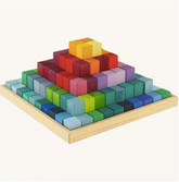The 100 building blocks in a wooden frame.by Grimms with lengths ranging from 4 - 20 cm are ideal for so many creations. You can build up walls, towers, houses with furniture, castles and so much more.