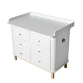 Elevate your nursery with the Oliver Furniture Wood nursery dresser, style 041365. Featuring a spacious, secure nursery top and six soft-close drawers with natural leather handles, this dresser blends contemporary Scandinavian style with practical details. Designed for years of use, the nursery top removes easily once baby days have passed, leaving a timeless piece to suit any room. Thoughtful craftsmanship and quality materials make this a safe, beautiful choice for your family home.