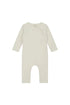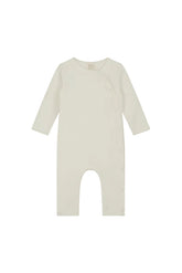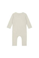 Soft baby suit with snaps from Gray Label in Cream. The onesie is made from organic cotton and fleece to make it extra soft. It has long sleeves and press buttons at the front, from neck to foot.