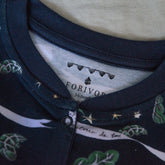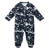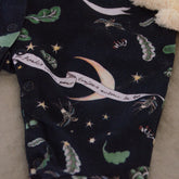 Baby Pyjama "I hope the bird of paradise in dark Blue colour by Forivor. This Pyjama onesie with feet is made of the softest organic cotton and features one of the most beautiful prints. Available in 2 sizes; 3-6 months is suitable for size 0-6 months and size 9-12 months for a six till 12 months old baby. This onesie is footed and can cover the small hands to avoid scratching in their face.