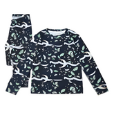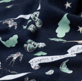 Pyjama "I hope the bird of paradise" in dark Blue colour by Forivor. This Pyjama contains a longsleeve top and pants and is made of the softest organic cotton and features one of the most beautiful prints. Available in 4 sizes; small fit.
