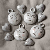 New addition to the family: This beautiful personalized heart with a face, made of the finest porcelain by Dutch artist Anouk Kramer. The drawing of the face is inspired by our moon from the zodiac collection. It’s creating a unique piece of love, to mark one of live’s most important moments. The heart can be attached to the wall with a small hook or just beautiful as decorational piece on a special place or on your festive table. Every piece is different because it's handmade & hand-painted.