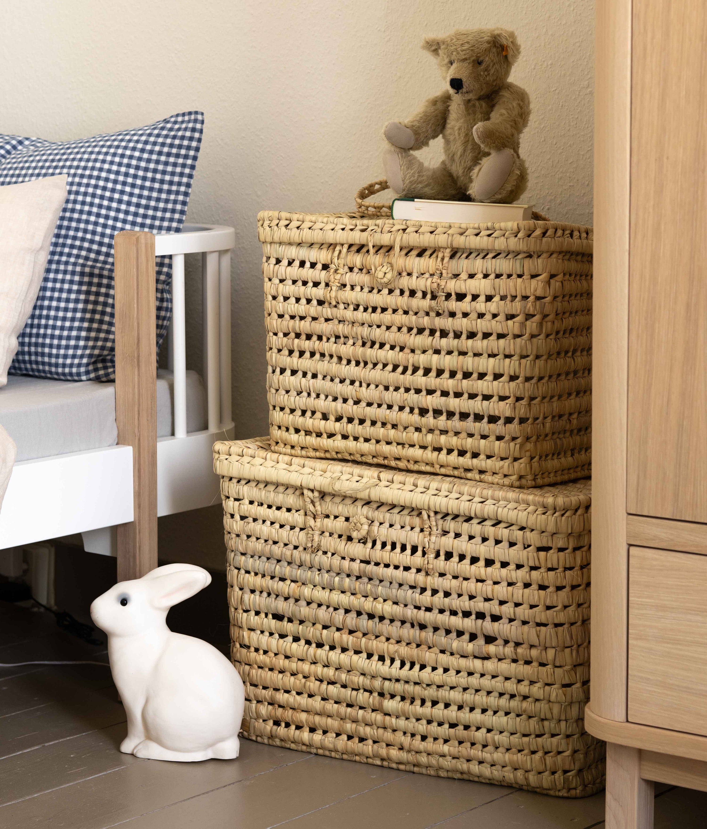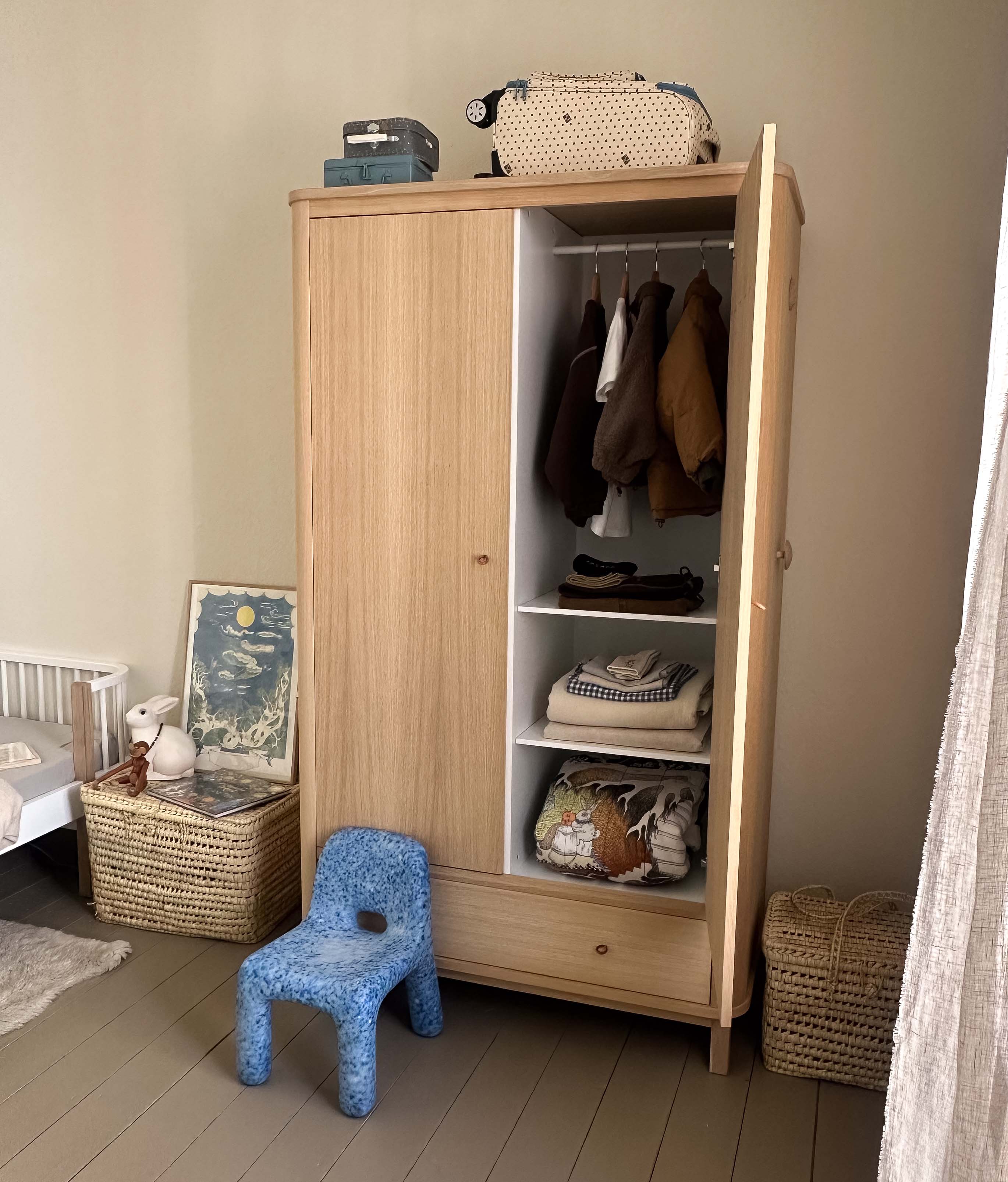 A beautiful room is also a practical one. The oak cabinet from Oliver Furniture is a classic, bringing both storage and style. For smaller treasures, mix in Tine K baskets in different sizes. They’re perfect for corralling little cars, art supplies, or those socks that always go missing.