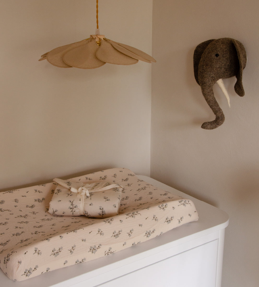 This changing mat cover from Garbo&friends is made with an elastic hem to wrap around the changing pad, easy to put on and easy to take of when it is time for wash.