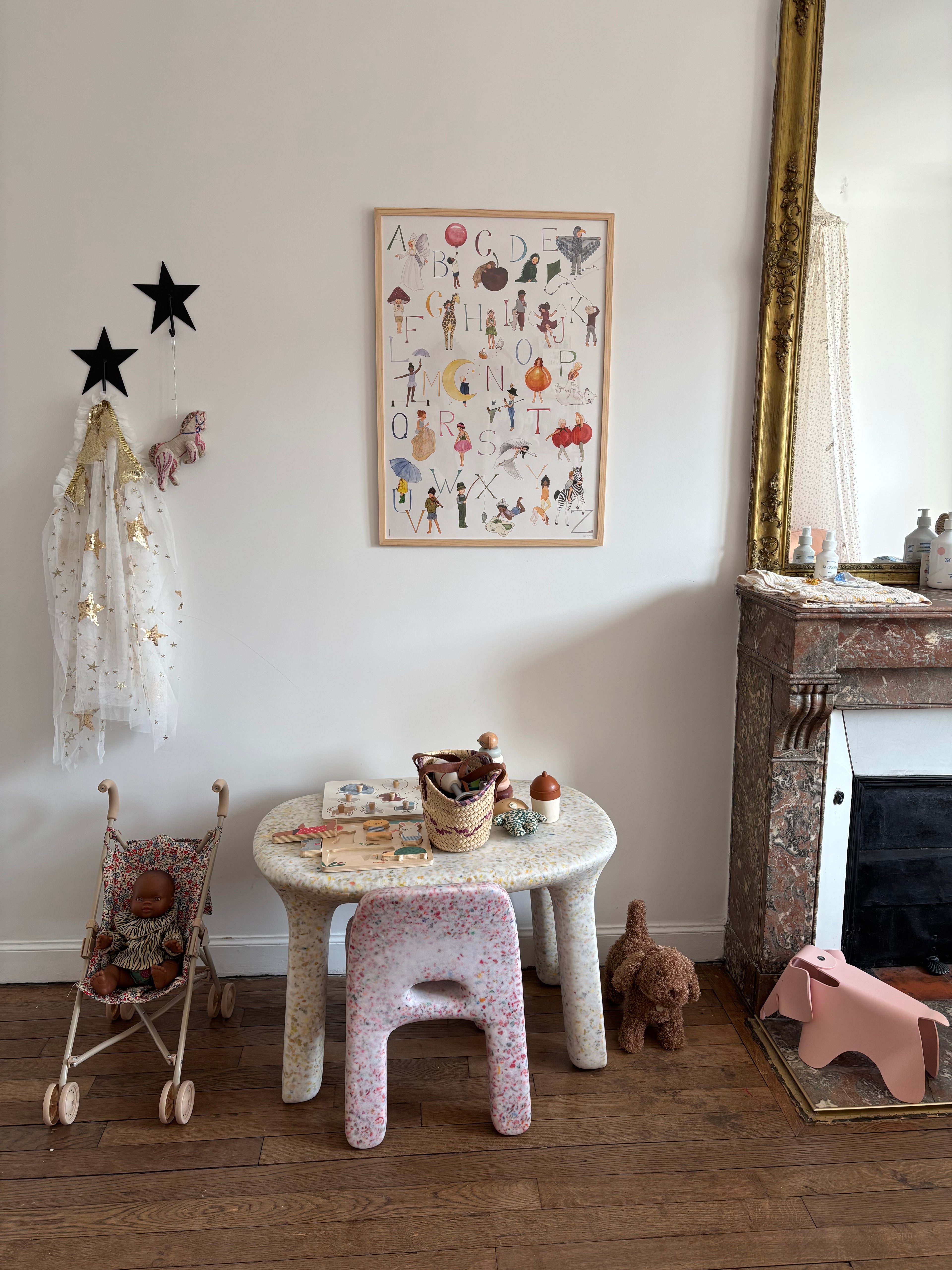 Olivia’s room is filled with gems from The Archive Store! Paula loves the Fiona Walker animal heads, Zoé Rumeau lighting, the Metal Star Hooks, and the EcoBirdy table—all perfect for creating a playful yet sophisticated kids’ space. Both for kids & adults, the Georges Store Lamp is a must-have for any room in the home.