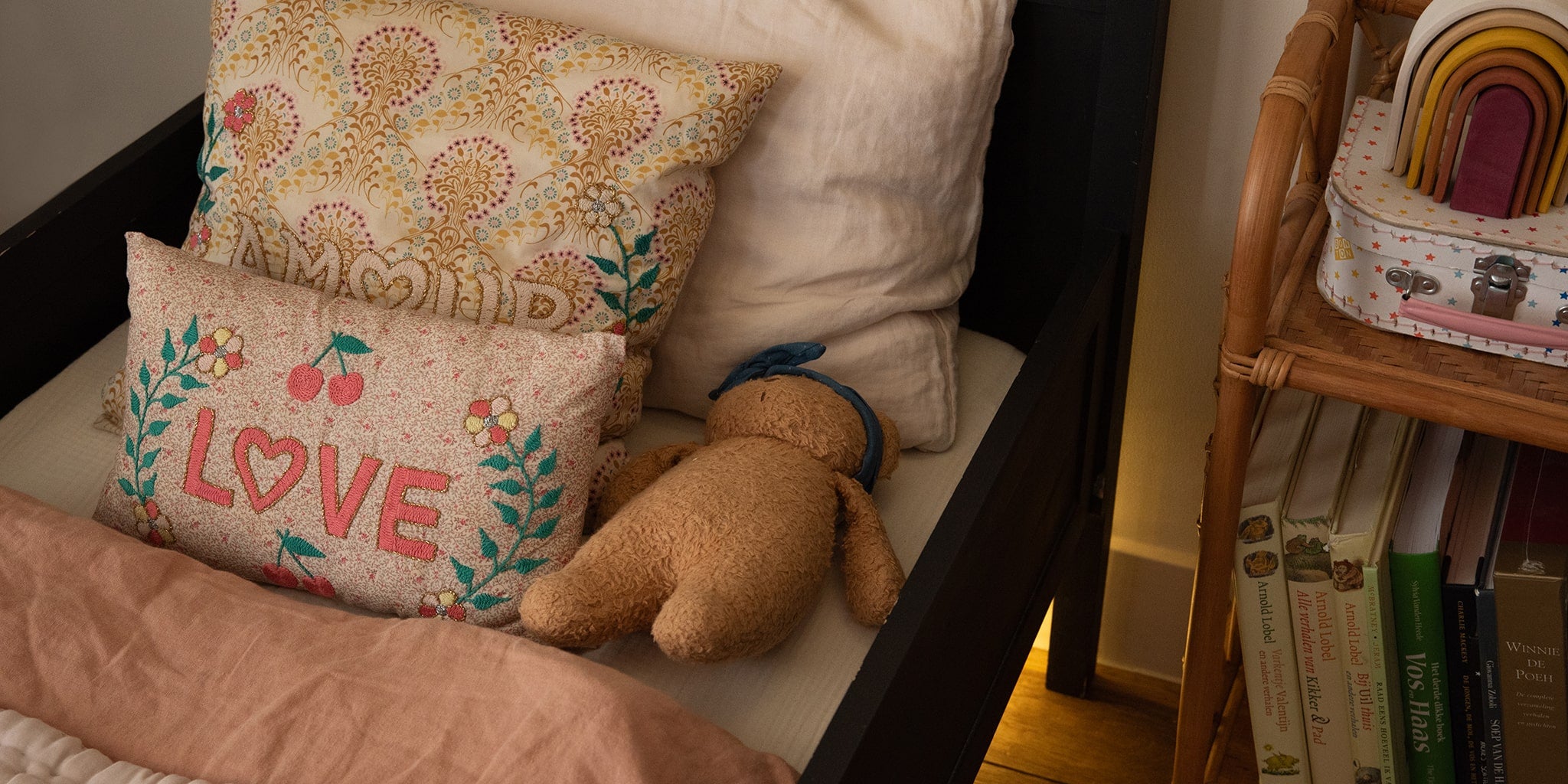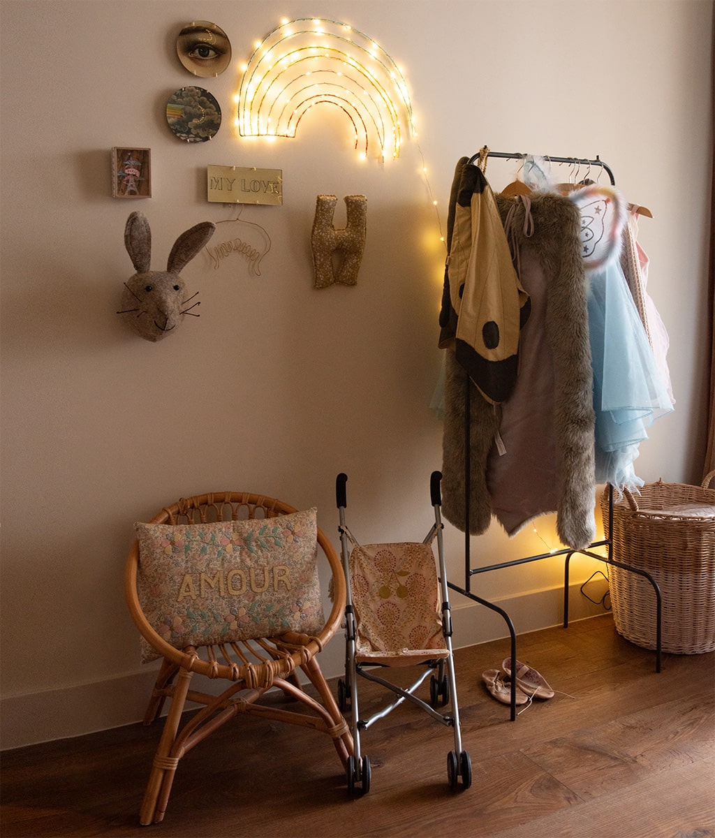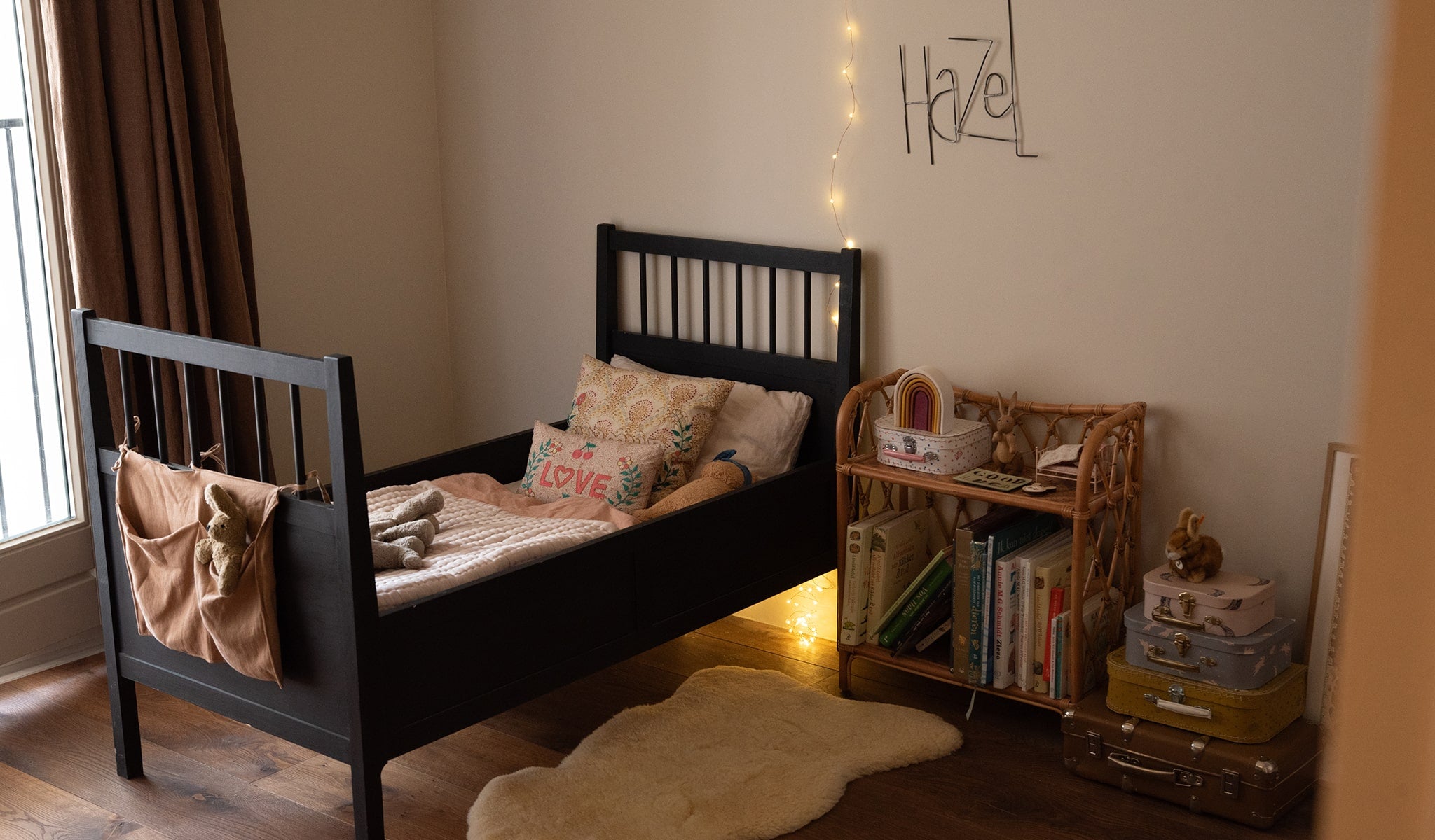 Hazels nieuwe kamer is haar speelhoek, droomwereld en slaapkamer in één. Een plek die met haar meegroeit en een verzameling is van al haar dierbare boeken, speelgoed en unieke stukken. We vinden het geweldig hoe perfect Martine deze magische plek heeft gestyled!