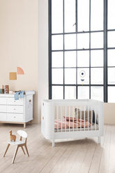 Wood Mini+ Basic (Ledikant/ Bed 0-9 jaar) in wit van Oliver Furniture - 041426. Het nieuwe bed Wood Mini+ Basic is ontworpen om te voldoen aan de behoeften van het kind van 0-9 jaar - van het eerste kinderbedje van de baby tot de wens van schoolkind om te slapen in een bed dat lijkt op dat van een volwassenen. Wanneer het kind uiteindelijk het bed ontgroeit, kan je het bed door een een paar aantrekkelijke kussens langs de rugleuning te plaatsen veranderen in een gezellig daybed of een kleine bank. Geschikt voor een hoek van de woonkamer, een brede gang of als een stijlvolle aanvulling op het interieur van een vakantiehuis.