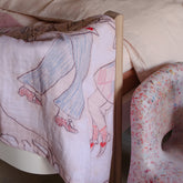 Printed onto double layer muslin this artwork by Forivor’s Alice Ruby Ross is inspired by the poem 'Winter Birds' by Linda Gregg, it illustrates a young couple, keeping warm in the snowy landscape by dancing with abandon. The pastel colours provide a gentle and serene backdrop to any room in the house.