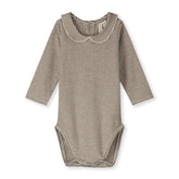 Rompertje van Gray Label in Cream. Deze body met lange mouwen is gemaakt van biologisch katoen, met elastaan voor een perfecte pasvorm. Hij heeft een schattig kraagje met drukknopen aan de achterkant en onderin. Een mooie en zachte basic voor je kleintje.