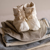 Zacht slabbetje van Gray Label in Woody Cream gestreept. Het slabbetje is gemaakt van biologisch katoen en heeft drukknopen aan de achterkant waardoor je hem makkelijk bij je kleintje om kan doen.
