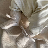 These sweet baby booties in Cream color from Hvid are made from the softest merino wool. The lacet makes sure your little one won't loose the booties and ensures a snug fit, while keeping those tiny feet warm. Because of the merino wool, they're perfect for sensitive skin, so your little one can wear them all day long without any irritation.