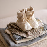 Zachte babyslofjes van Gray Label. De slofjes zijn gemaakt van biologisch katoen en elastaan __voor een comfortabele pasvorm. Ze zijn perfect om de voetjes van je kleintje warm te houden. De slofjes hebben touwtjes in een prachtige visgraat.