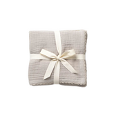 De mousseline doeken zijn voorgewassen, waardoor ze een mooie kreukelige look hebben die nog zachter en kreukeriger wordt na het wassen. Verkocht als kleine geschenkverpakkingen in een verpakking van 3 met een strik.