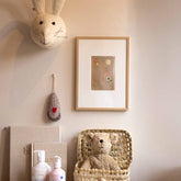 De ingelijste Sterrenbeeld Poster Leeuw brengt kosmische schoonheid in huis, een verfijnd ontwerp van Jasmijn van der Zwaan voor Hazel & George. Gepresenteerd in een hoogwaardige A4 lijst van massief eikenhout met passe-partout.
