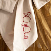 Kies de kleur van het borduursel en een woord of naam naar keuze (max 8-9 karakters per zijde.
