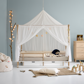 Dit lange kussen is gemaakt van fijne katoen canvas en is gemaakt voor het Camp Hemelbed en Camp Junior bed van Oliver Furniture. De bedslang, die zich langs de gehele rand van het bed slingert als een fijne bed bumper, zorgt voor een zachte en veilige ruimte voor het kleinere kind, maar kan ook veelzijdiger worden gebruikt, bijvoorbeeld als rugsteun of knuffelslang voor de oudere kinderen.