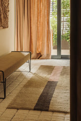 Ontworpen om kleur en karakter aan je interieur toe te voegen, combineert dit wollen vloerkleed krachtige Basil en Moss kleurvlakken met verfijnde verticale lijnen in Dusty Pink en Charcoal. Een evenwichtige compositie die warmte, diepte en een eigentijdse uitstraling brengt in elke ruimte.