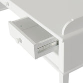 Seaside junior bureautafel van Oliver Furniture met een zeer pure stijl. De grootte van het bureau en zijn lichte uitstraling maken hem erg handig bij het interieur van de kinder- / junior kamer. Het junior bureau heeft veel opbergruimte in de vijf verschillende lades. Als uw kindje ouder wordt kunt u door het aanschaffen van extra tafelpoten de hoogte aanpassen naar 74 cm.