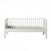 Seaside junior day bed van Oliver Furniture - 21229. Zoals de naam al doet vermoeden, dient het Seaside junior day bed een tweeledig doel: als een gezellig bed met beschermende zijkanten 's nachts en als bank met sfeervolle kussens tegen de rugleuning gedurende de dag. Door zijn afmeting is hij geschikt voor de kleine kinderkamer, een hoek van de woonkamer of een brede gang.