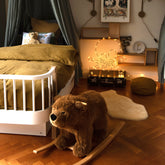 Schommelbeer Urs is een trouwe vriend en een echte eyecatcher in iedere kinder- of speelkamer. Urs is 70 cm lang, gemaakt van de allerzachtste pluche en is wasbaar. De hoogte van de zitting is ca. 45 cm. Deze knuffelige schommelbeer is altijd in voor een leuke tijd en is het ultieme verjaardags- of kerstcadeau. Wie wil er nu niet spannende avonturen beleven met zo’n zelfverzekerde reus. Het frame is gemaakt van staal met houten schommel delen en kan tot 100 kg dragen.