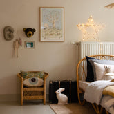 Deze stoffen letters zijn handgemaakt in Amsterdam. Ze zijn gevuld met 100% pure schapenwol en hebben een lusje aan de achterkant om opgehangen te worden aan de muur. De perfecte accessoire voor elke kinderkamer!