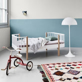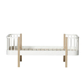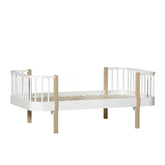 Oliver Furniture - Wood Junior Bed wit/eiken 90 x 160 cm - 041401. Het Wood juniorbed is het eerste echte kinderbed na het eerste babybedje/ledikant en daarom is het erg belangrijk dat het kleine kind zich veilig en geborgen voelt. . Het junior bed met de afgeronde hoeken, de warmte van de Scandinavische eik en met een lengte van 160 cm is de perfecte plek voor het kleine kind om een veilige en gezellige sfeer te creëren. Het Wood juniorbed kan worden uitgerust met een bedhek voor meer veiligheid en na verloop van tijd kunnen de bedzijkanten worden omgezet in langere bedzijkanten van 200 cm.