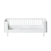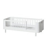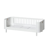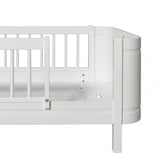 Oliver Furniture - Wood Mini+ juniorbed 041466, wit. Het Mini+ juniorbed is ontworpen om tegemoet te komen aan de behoefte aan een kwaliteitsoplossing in een kleine kinderkamer. Met zijn royale afmetingen maar kleine gestalte is het Mini+ juniorbed de perfecte plek om een veilige en fijne sfeer te creëren voor het kleine kind. Het juniorbed kan worden uitgerust met een bedhek voor meer veiligheid. Het Mini+ juniorbed is verkrijgbaar in twee modellen:een model in het wit met poten in prachtig warm Scandinavisch eiken (wit geolied) en een ander model in geheel wit. Met een eenvoudige set kan het Mini+ juniorbed worden omgebouwd tot een laag hoogslaper en ontstaat er een gezellige ruimte onder het bed waar het kind kan rondhangen. Wanneer het kind uiteindelijk uit het junior bed groeit, kan het gemakkelijk gebruikt worden als daybed in de kinderkamer of in een andere kleine ruimte in huis.