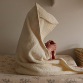 Eén van onze favoriete badcapes in super zachte badstof! Deze comfortabele en knusse badcape met capuchon en konijnenoren is handgemaakt in Nederland van superzacht, GOTS-gecertificeerd katoen.