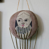 This enchanting textile wallhanging floats between fantasy and nostalgia. Created from an original illustration, its details are brought to life through a delicate blend of machine embroidery and intricate beadwork. An enchanting statement piece that celebrates storytelling and artistry.