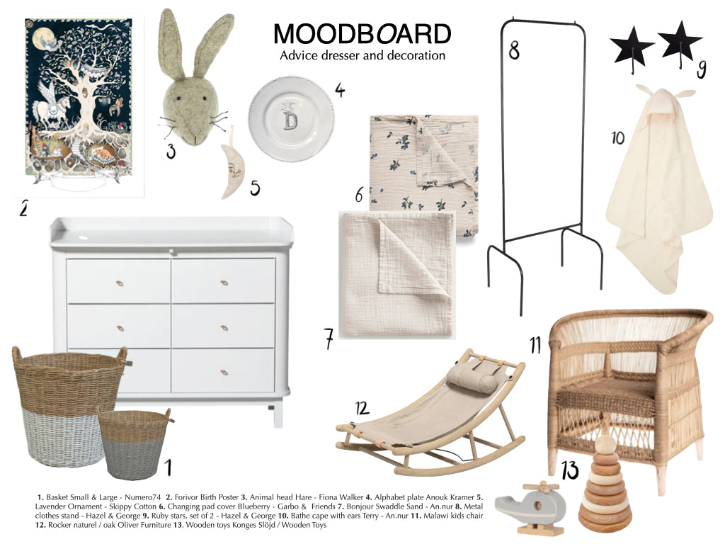 And yes, this is the actual fun part; putting everything together in your room! This is a result of a client that we helped creating a beautiful and calming nursery, with some fun and personal items. We're in love with the result!