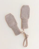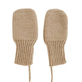 Soft knitted mittens Fiza in Sand from Belgium brand Hvid. The sand brown mittens are soft and have a great thickness for outside. Impossible to loose because of the lacet. The rib border makes it stay on the hands and keeps wind and cold out.